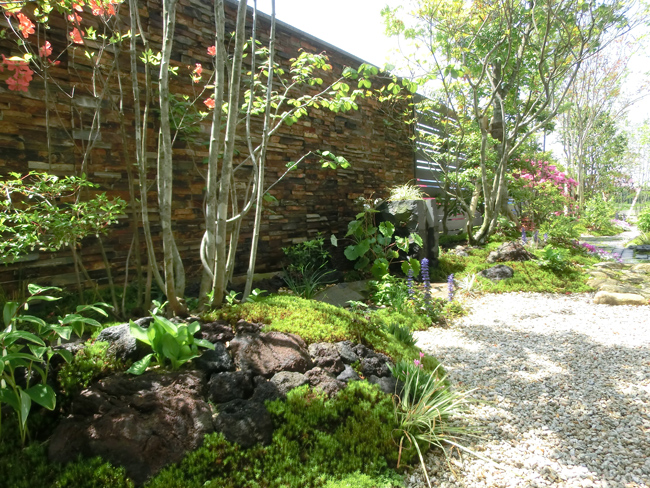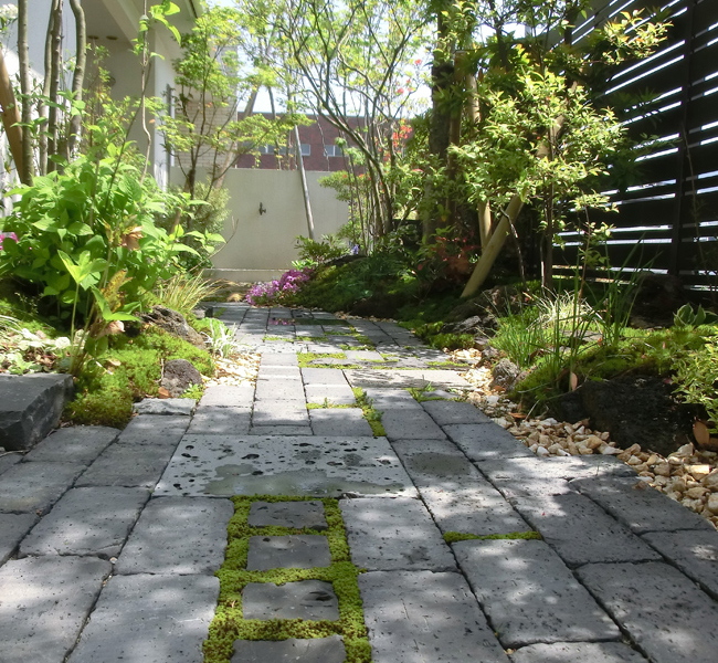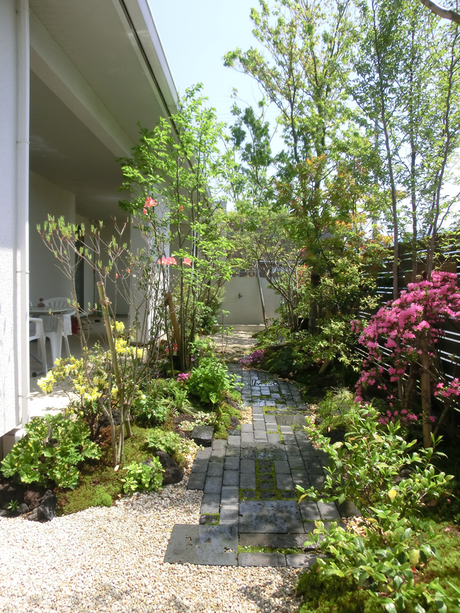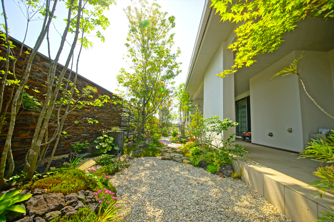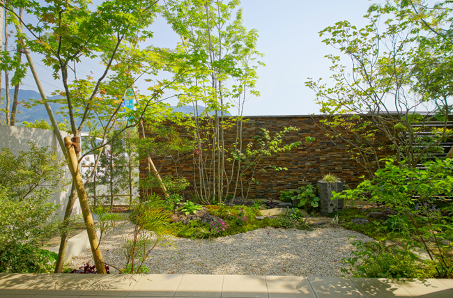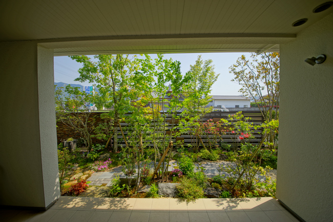 往来する人々の視線を気にせず、緑鮮やかな景色を楽しんでもらえる様なお庭を目指しました。