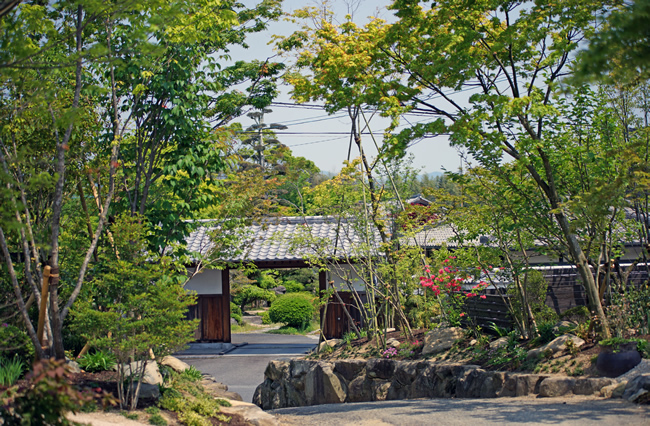 雑木に包まれた森木立のアプローチと建物外観
