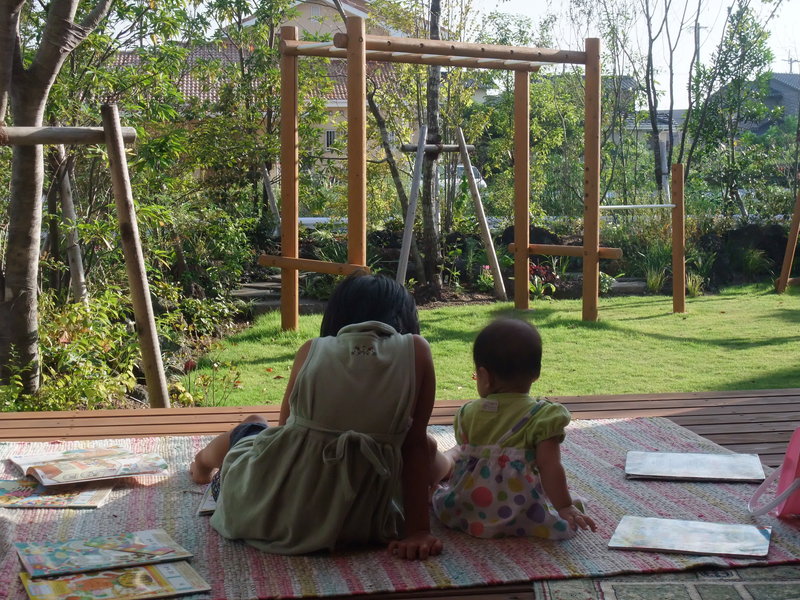 季節ごとに家庭菜園や落葉ひろい、広いウッドデッキでのひなたぼっこや遊具遊び。