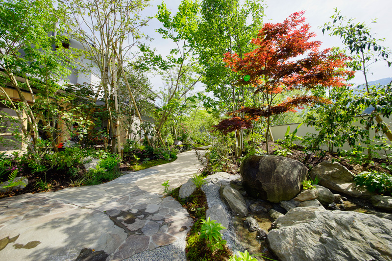 その想いに応えるべく大小様々な木々と色彩豊かな下草でかつての風景を想像させる森のような庭を造りました。