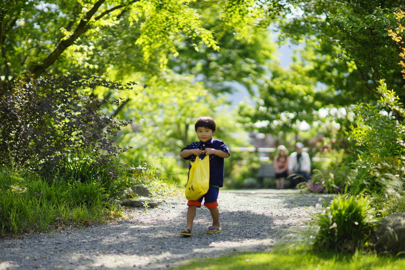 木々は枝葉を瑞々しく広げ家族連れでも散策できるように広めにとった園路にやさしい木漏れ日が射します。