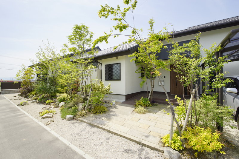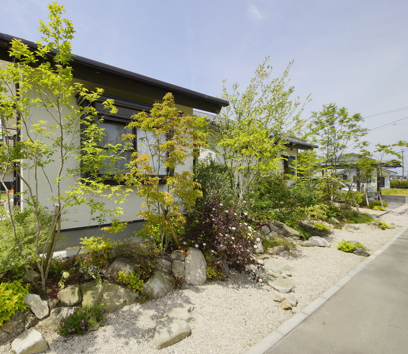 また道路に面した玄関周りは、殺風景にならないよう木々を多めに植え、