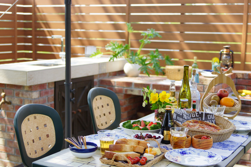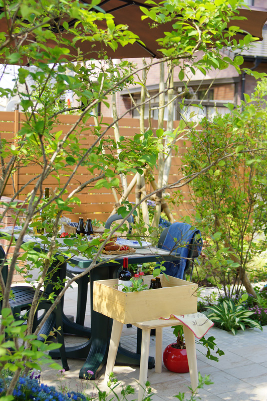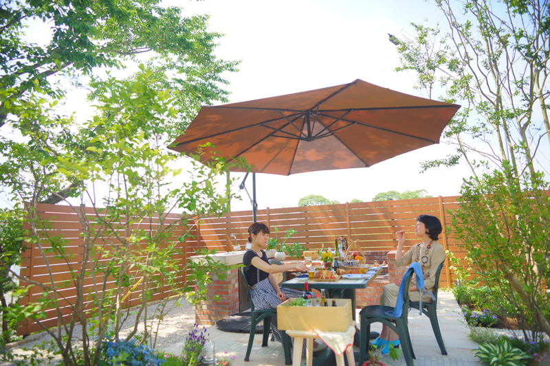 ご友人が集まることの多いA様のおうち。 現在、草に覆われている庭の一角でバーベキューやお茶が出来たらとご相談を頂きました。 タイルでテラスを、レンガでバーベキュー炉とガーデンシンクを作りました。 外周部はフェンスで外からの視線を遮ることでプライベート空間を満喫できるようにしました。 朝昼晩と3部構成でガーデンパーティーが開かれてある日もあるとか。 これまで草取り等におわれていた時間が談笑の時間になったとお聞きし嬉しい限りです。