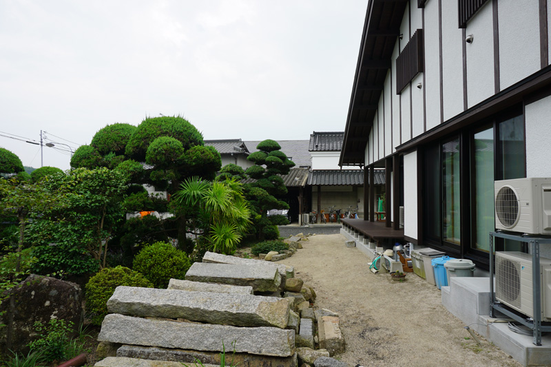 立派なマキノキやカイヅカイブキといった常緑樹の仕立て木が空間を埋めるように植えてありましたが、