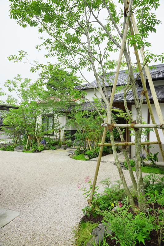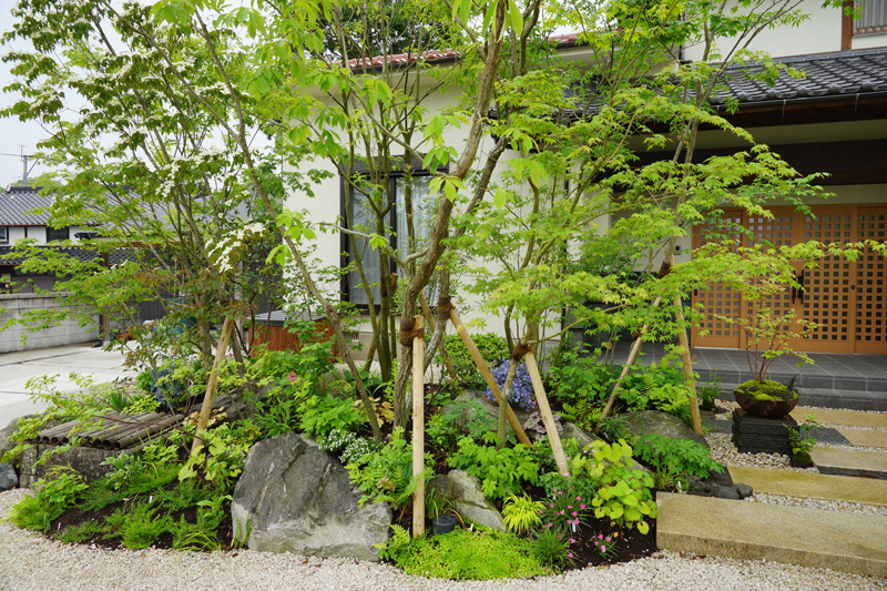 立体的で奥行きのある雑木の庭にしました。