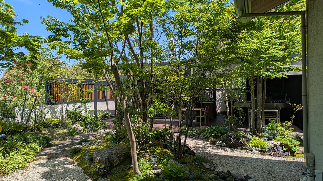新築から10年目、コロナで在宅の時間が増えたのを機に、もう一度元気な庭に造り替えたいという思いで、 全面改修し、雑木の風情が楽しめる庭をご依頼をいただきました。