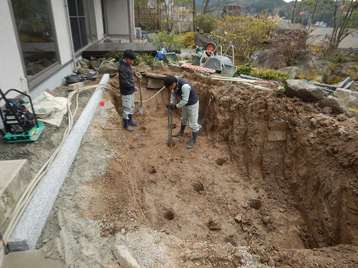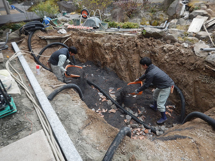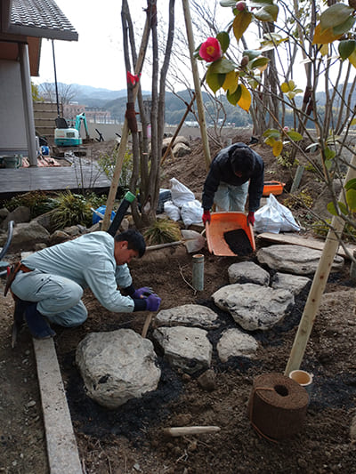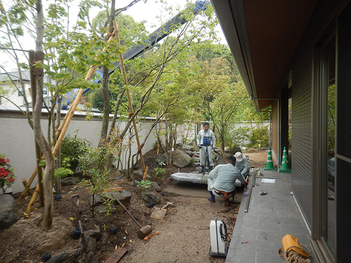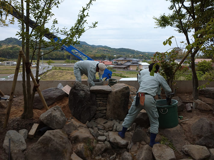 手仕事の多い造園工事は体力とは別に細やかな造作に知恵と感性が求められます。