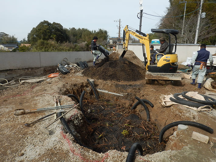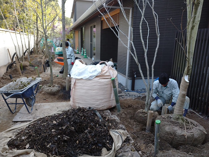 粘土の為、排水性が著しく悪く、根腐れを起こし樹木のほとんどが枯れていた。