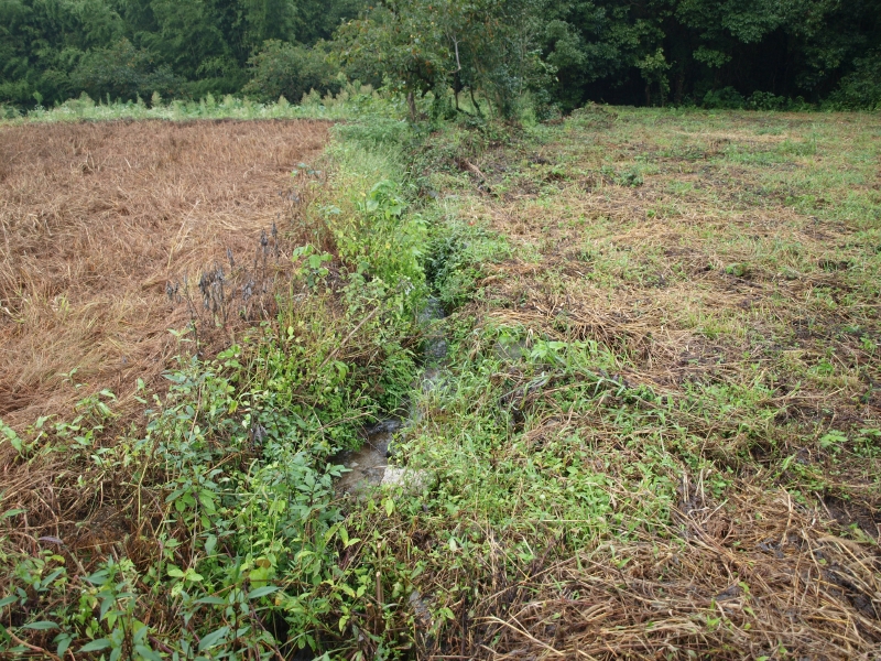 小川のような用水路。枯れ草におおわれているけれども流れはとても美しい。