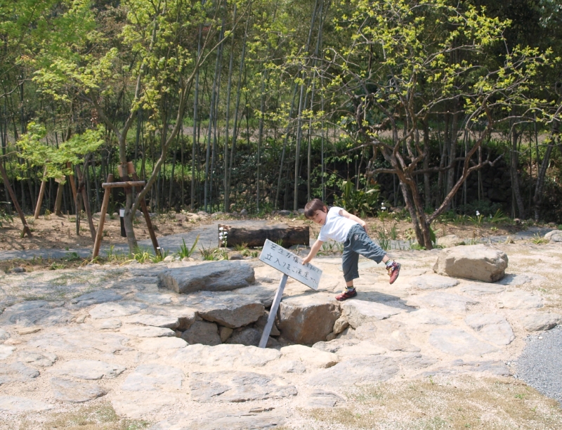 まるで屋久島。結晶の荒い石灰岩の表面にびっしりと苔がくいついています。