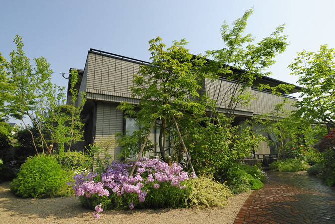 木々の足元には、四季折々の花が咲き、雑木の伸びやかな枝先には新緑や紅葉で季節の変化を教えてくれるように。